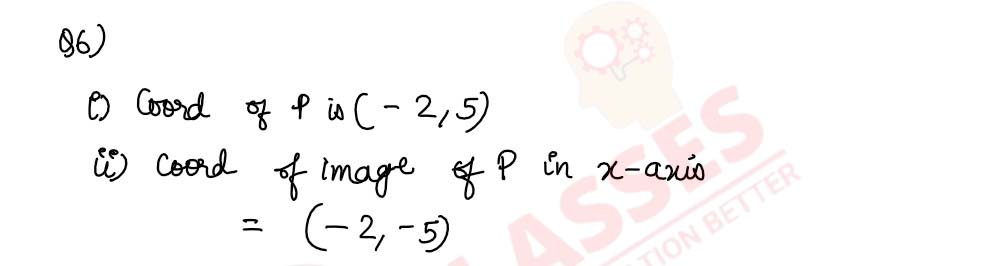 Q6 A point P is reflected in the origin. Coordinates of its image are (2, —5). Find