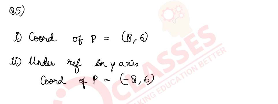 Q5 A point P is reflected in the x-axis. Coordinates of its image are (8, —6).
