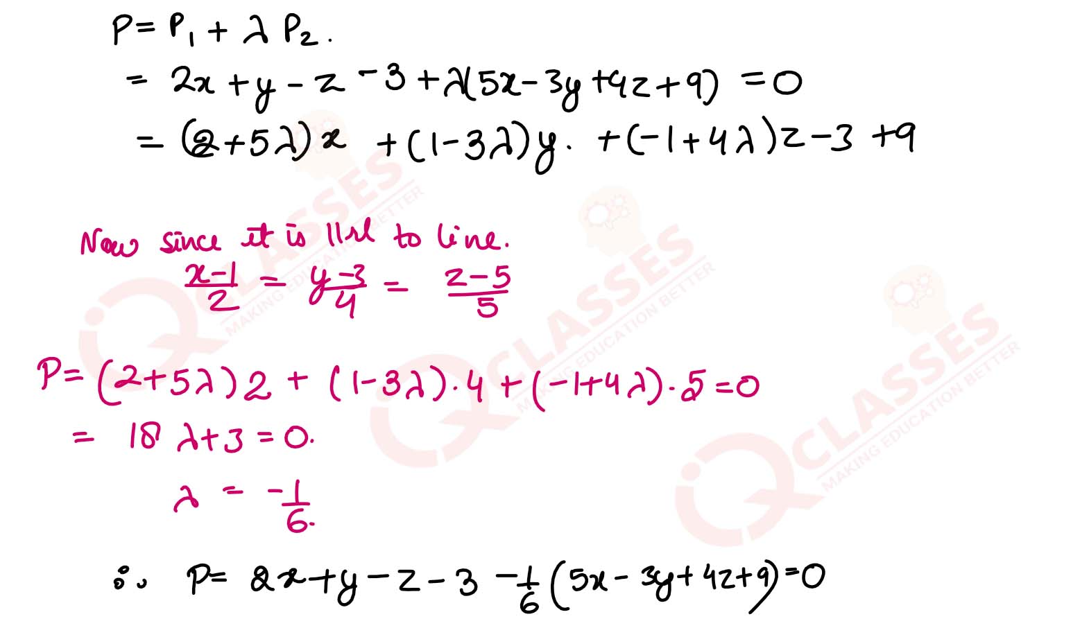 Find the equation of the plane passing through the line of intersection of the planes 2x+y-z=3,5x—3y + 4z+9 =0 and parallel to the line
