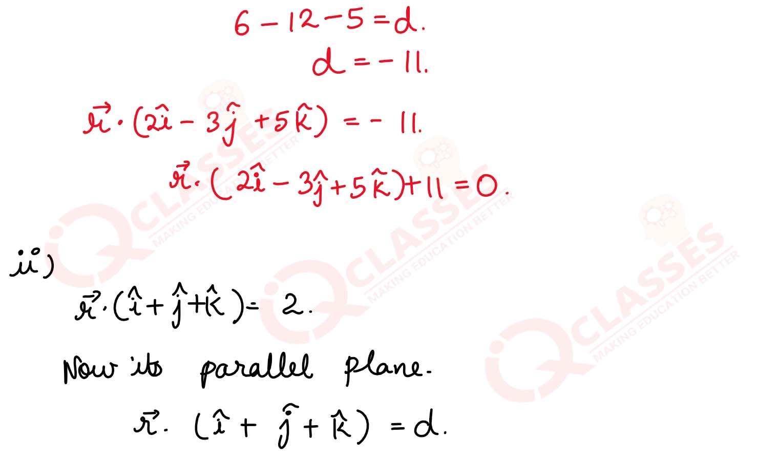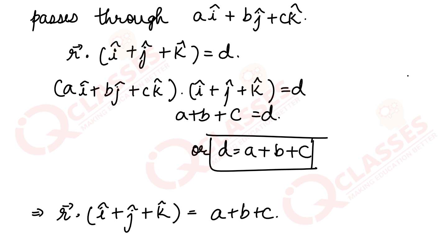 (ii) Find the equation of the plane passing through the point (a, b, c) and parallel to the plane r→(i^ +j^ +k^) =2.