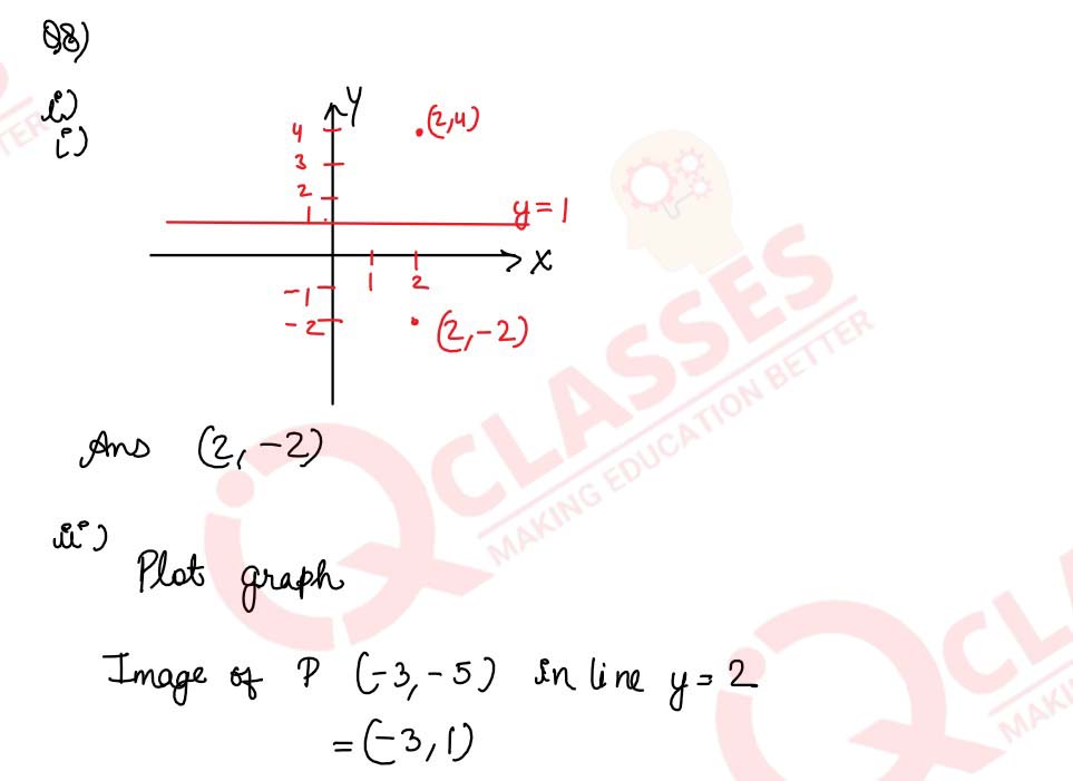 Q8 (i) The point P(2, 4) on reflection in the line y = 1 is mapped onto P’. Find the coordinates of P’.