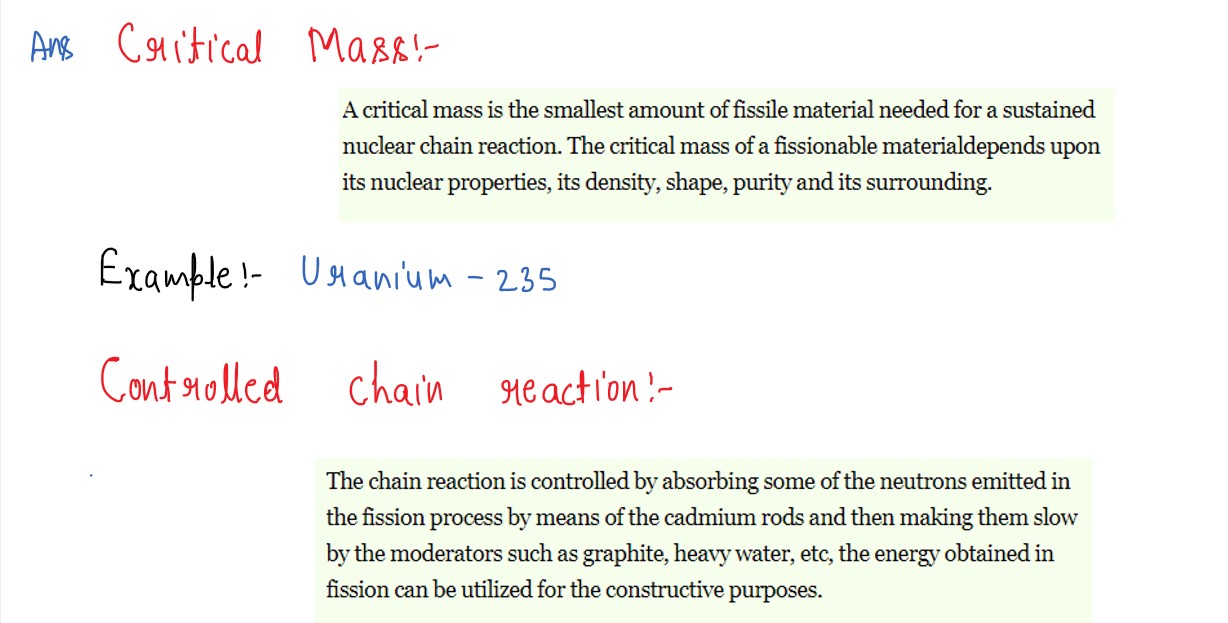 Explain 'critical mass' and 'controlled chain reaction"