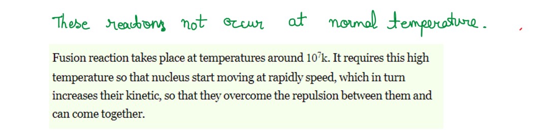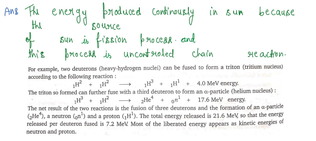 How is energy being produced continuously in sun? Give reactions. Why do these reactions not occur at