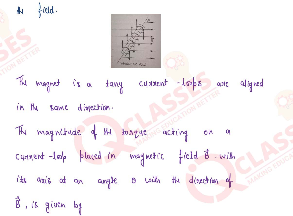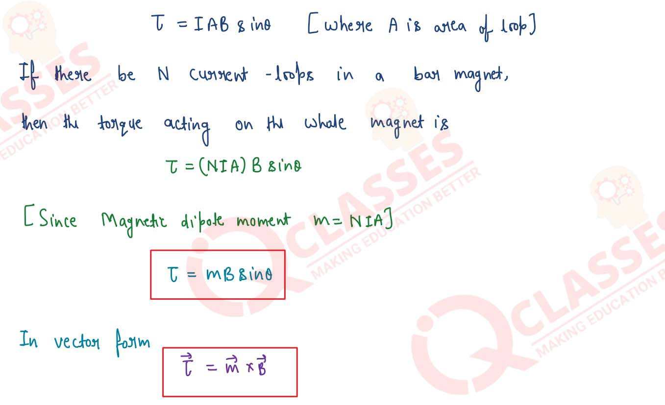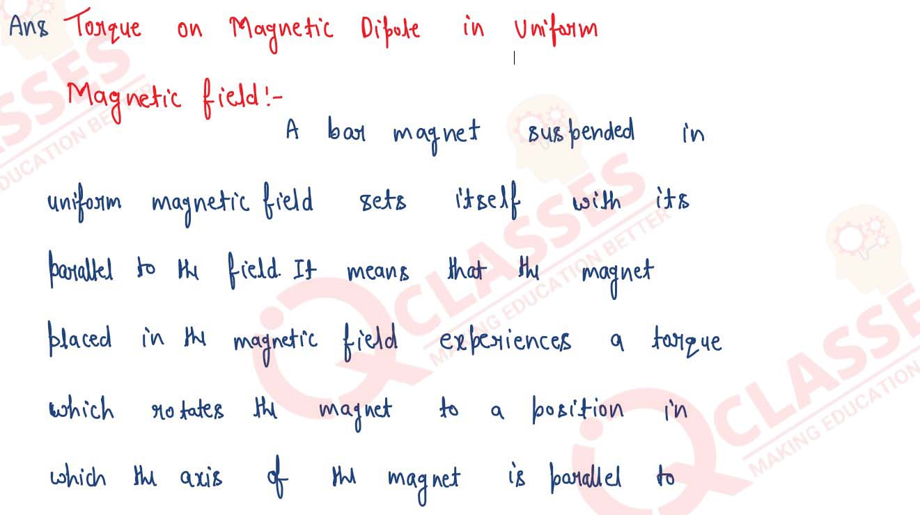 Obtain an expression for the torque acting on a bar magnet placed in a uniform magnetic field and define