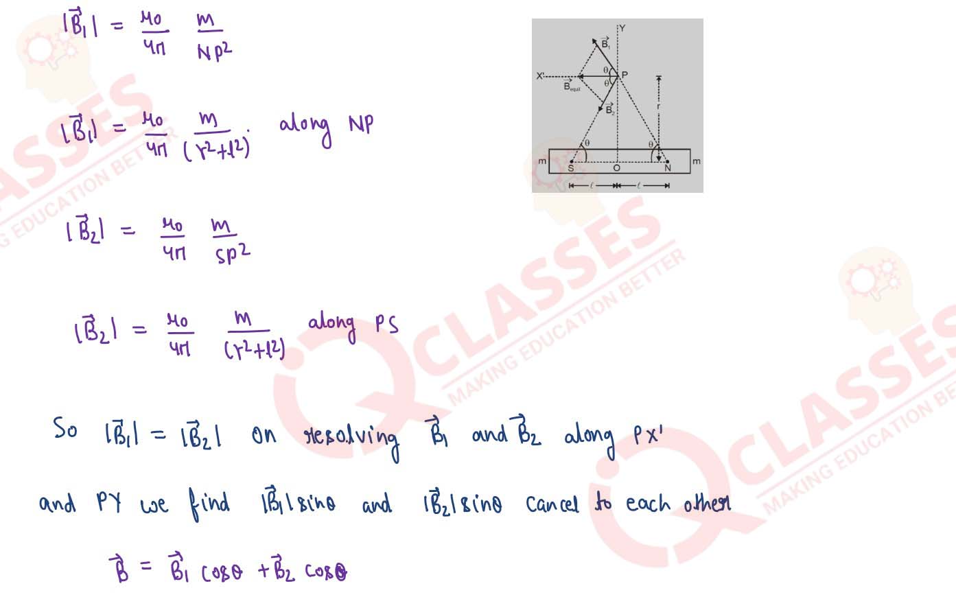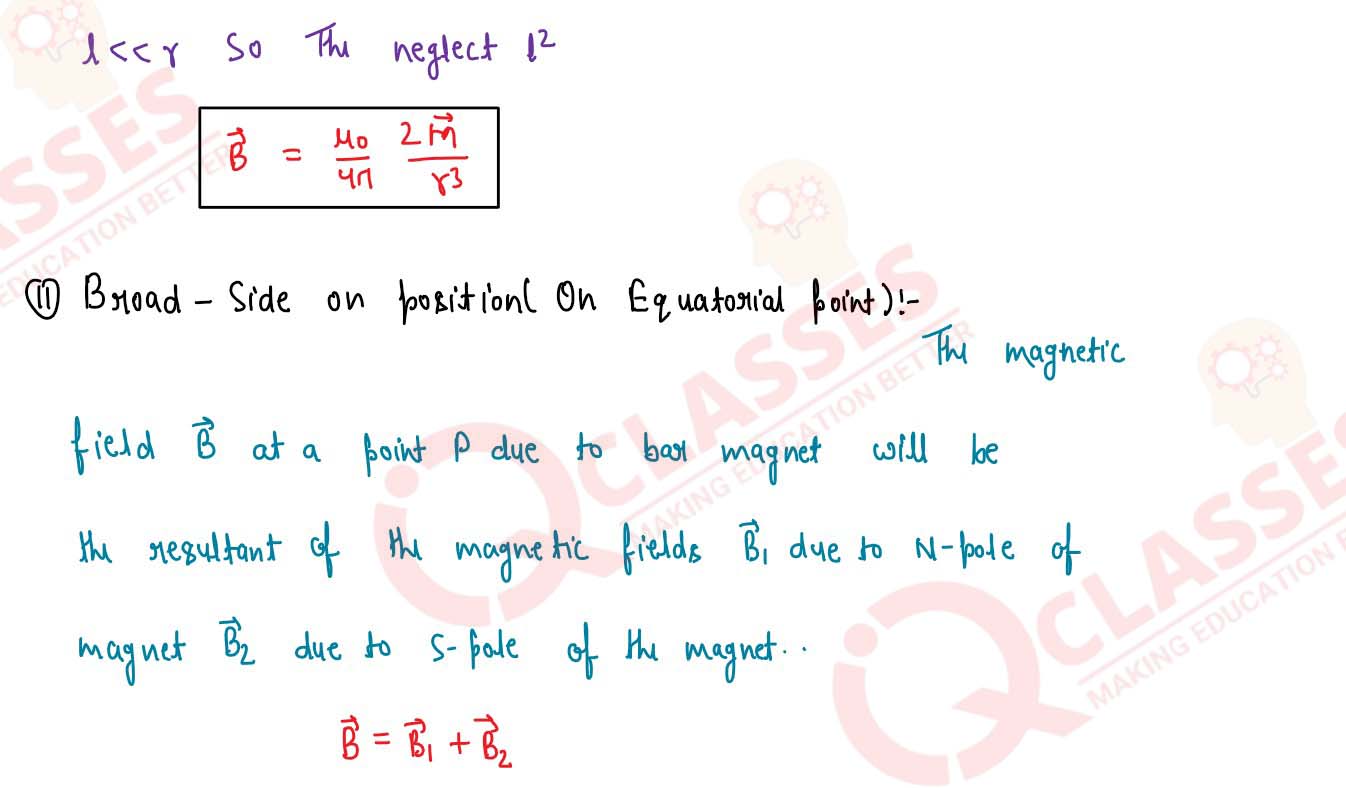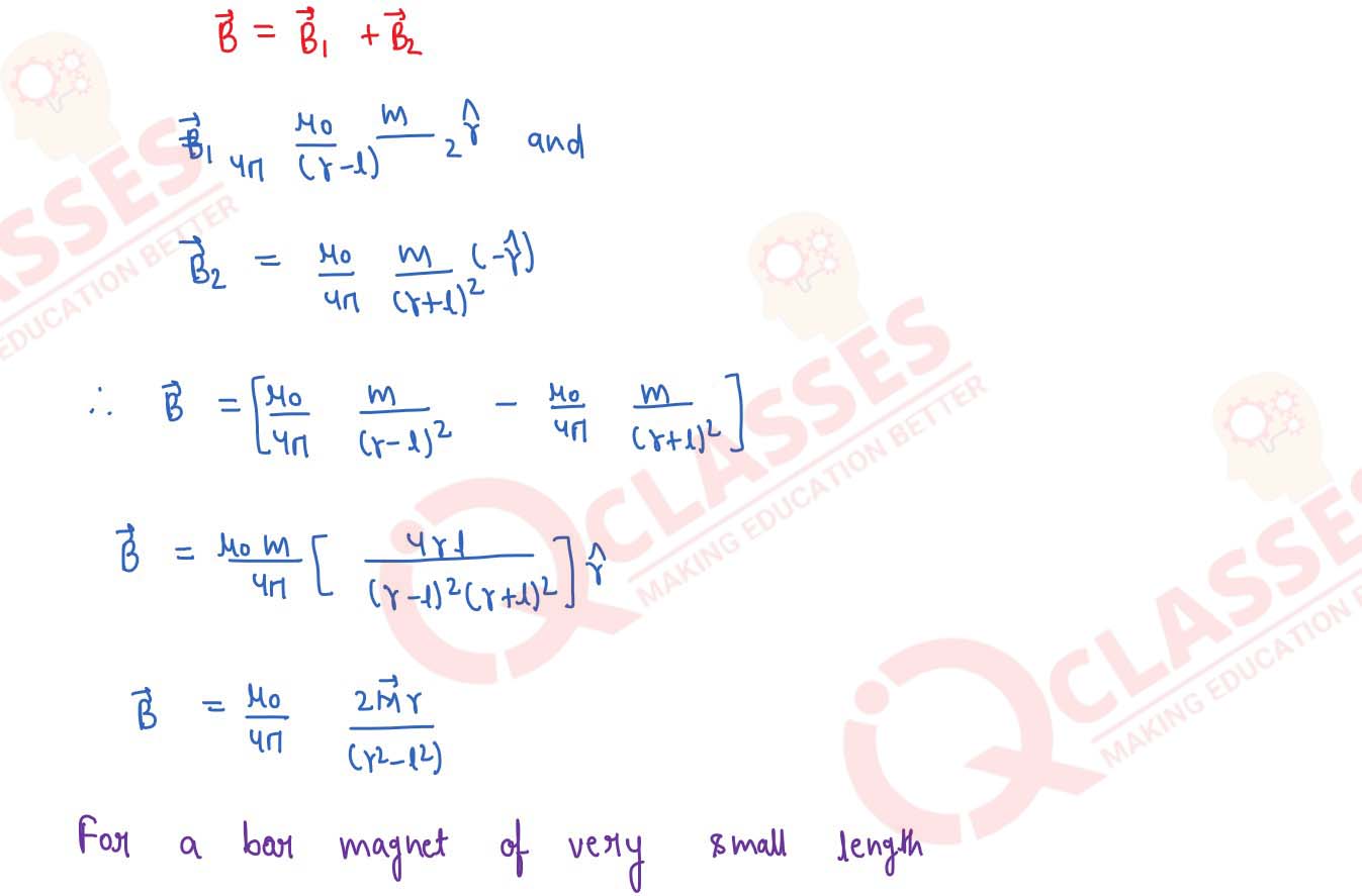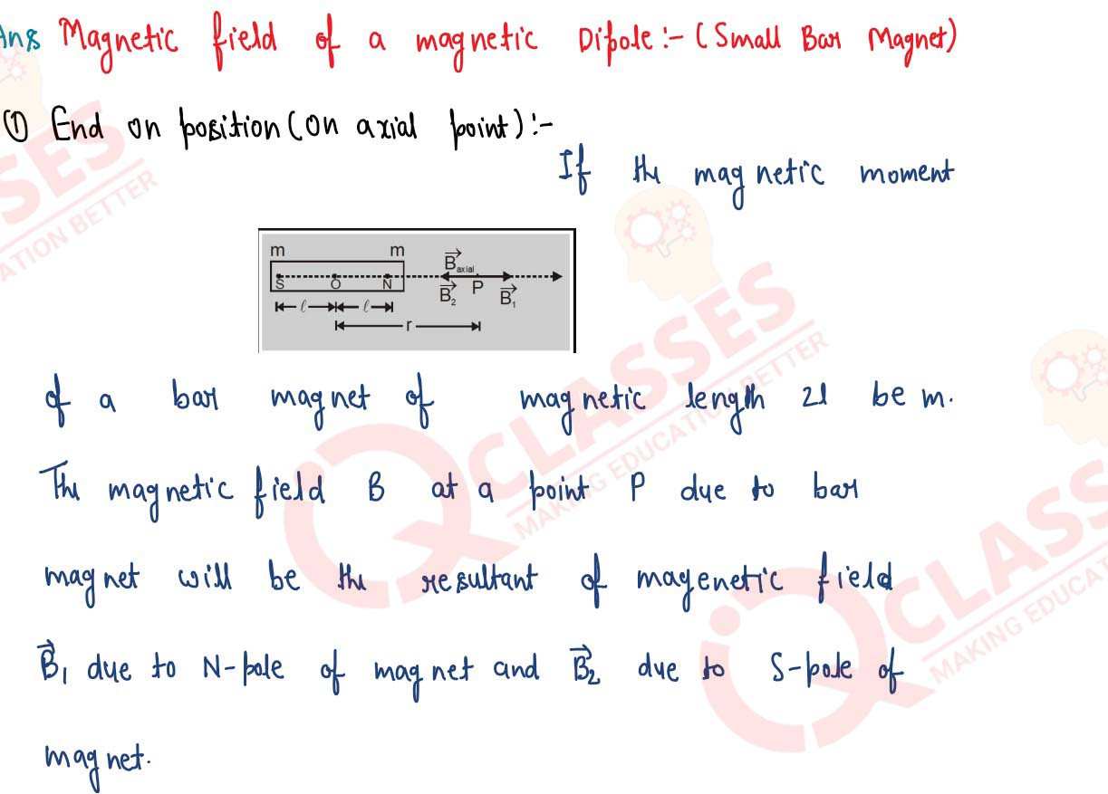 Determine the expression for the magnetic field due to a short bar-magnet (magnetic dipole) at a point