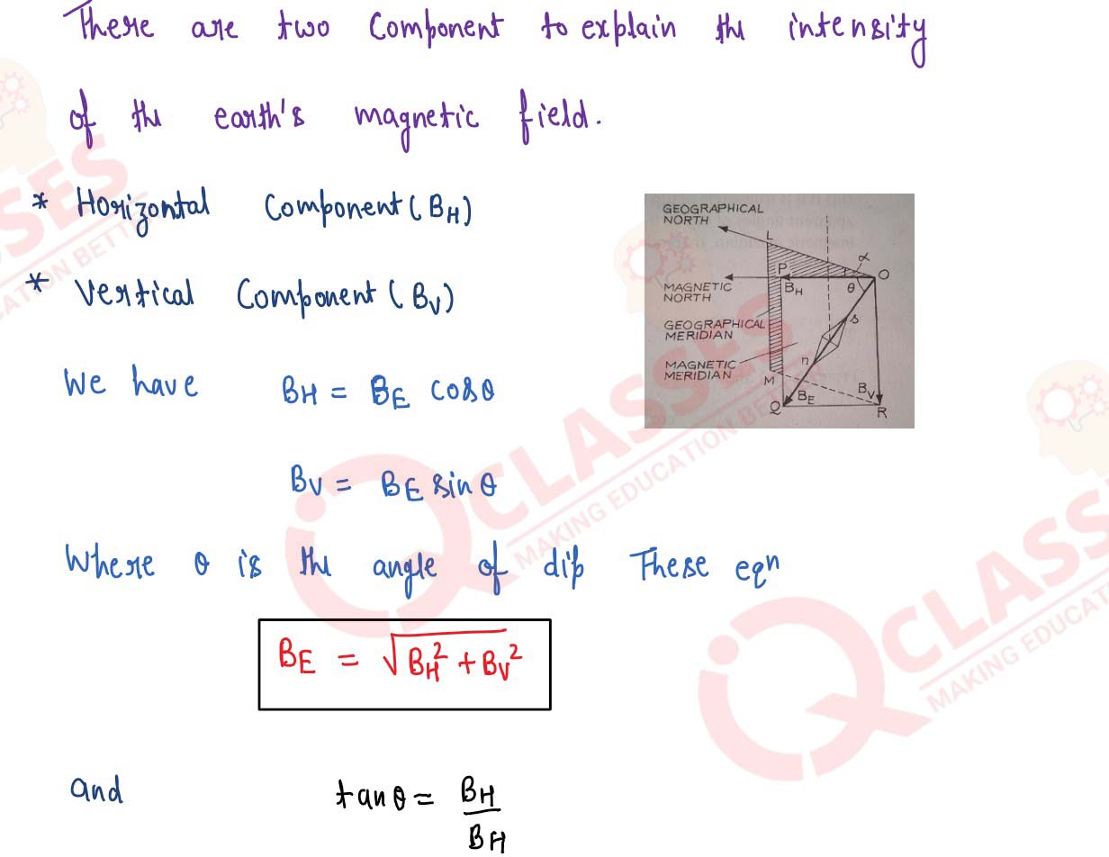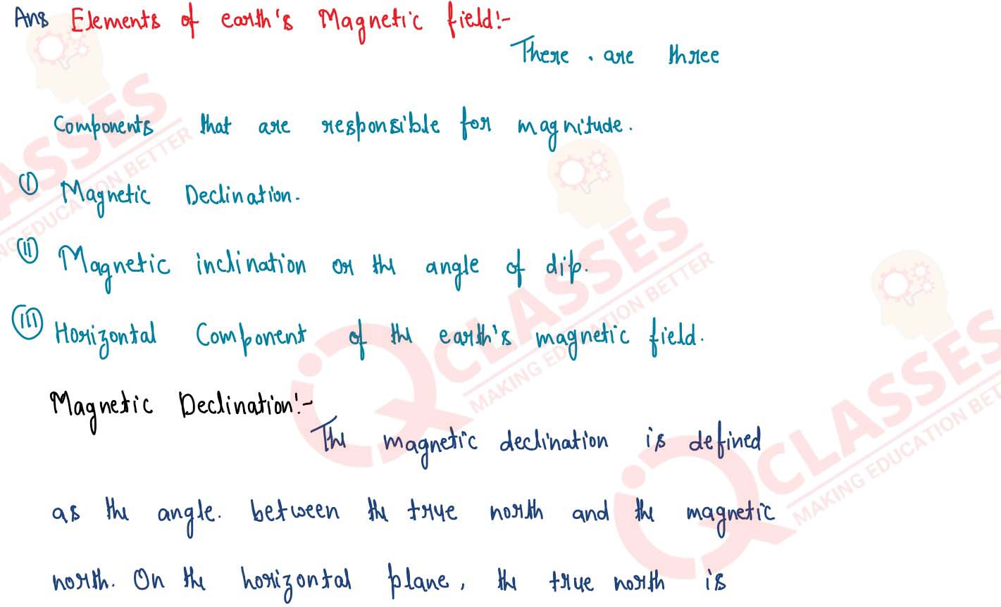 What are the elements of earth's magnetic field? Show them in a labelled diagram. What is their